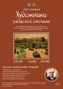 Арт-лекция «Художники запасной столицы» пройдёт в рамках комплексного выставочно-просветительского цикла «Арт-запасы. Искусство запасной столицы: музыка, живопись, театр». О новых событиях проекта можно будет узнать в сообществе СОУНБ «ВКонтакте».