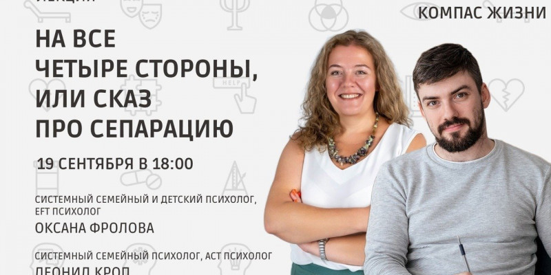 Предстоящая лекция «На все четыре стороны, или Сказ про сепарацию» пройдёт в рамках психологического проекта «Компас жизни», который проводится в партнёрстве с клиникой психотерапии «Про тебя». Анонсы новых лекций, мастер-классов, семинаров и творческих встреч проекта можно будет увидеть в сообществе Самарской областной научной библиотеки «ВКонтакте». Подписывайтесь и следите за новостями!