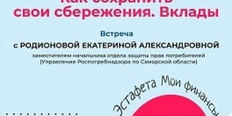 Встреча «Как сохранить свои финансы. Вклады» организована общими усилиями Управления Федеральной службы по надзору в сфере защиты прав потребителей и благополучия человека по Самарской области и ФБУЗ «Центр гигиены и эпидемиологии в Самарской области».