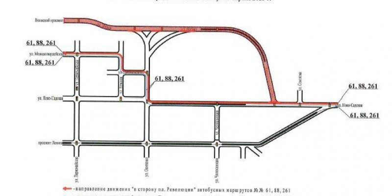 - с 19:00 12 апреля до 14:30 13 апреля 2025 года – по улице Максима Горького на участке от улицы Вилоновской до улицы Венцека; по Волжскому проспекту на участке от улицы Осипенко до улицы Вилоновской; по улице Лесной на участке от Северо-Восточной магистрали до улицы Осипенко; по Северо-Восточной магистрали на участке от улицы Ново-Садовой до улицы Лесной.