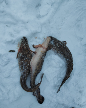 Сотрудники транспортной полиции задержали браконьера с поличным – в санях оказалось три экземпляра рыбы «налим». С места происшествия были изъяты бур, лопата, лом, пластиковые сани, рыболовная сеть, принадлежащие подозреваемому.
