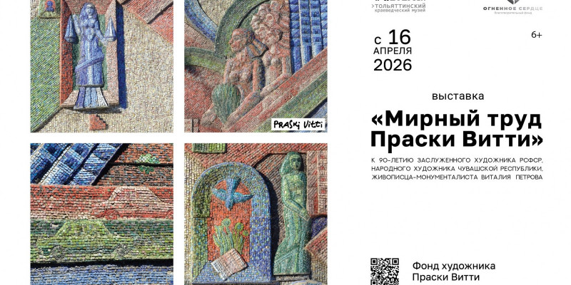 15 апреля в 16:00 в Тольяттинском краеведческом музее состоится открытие выставки «Мирный труд Праски Витти». Экспозиция приурочена к 90-летию со дня рождения Виталия Петровича Петрова (Праски Витти) — заслуженного художника РСФСР, народного художника Чувашской Республики, живописца-монументалиста, графика и мастера декоративно-прикладного искусства. (6+)