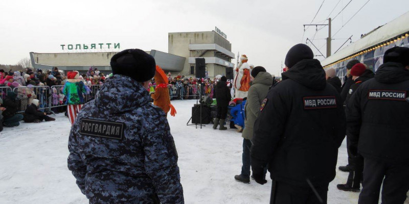 Сотрудники Средневолжского линейного управления МВД России на транспорте и Управления Росгвардии по Самарской области обеспечили безопасность и общественный порядок во время праздничных мероприятий по случаю прибытия на железнодорожную станцию Тольятти Поезда Деда Мороза.