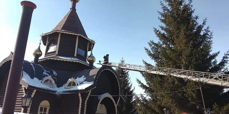 Основной задачей стала отработка действий по ликвидации условного возгорания, которое, по сценарию, началось в алтаре и затем перекинулось на помещение колокольни.