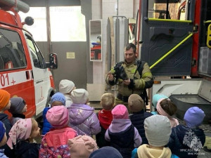 Сотрудники части с удовольствием рассказали детям о своей работе. Они показали им оборудование пожарных автомобилей. Малыши узнали, как устроены машины, для чего нужна спецодежда, и даже смогли её примерить.