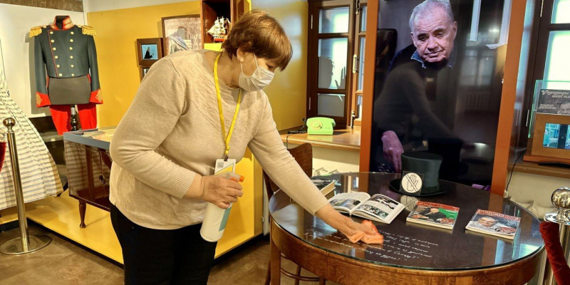 «Регулярно дезинфицируются все поверхности, в первую очередь контактные, с которыми взаимодействуют посетители. Дважды в день проводятся влажная уборка и обеззараживание воздуха. По мере необходимости проветриваются помещения. Также в период обострения эпидемиологической ситуации мы следим за тем, чтобы посетители соблюдали расстояние и не находились в прямом контакте друг с другом. При необходимости гости могут получить для себя индивидуальную маску», - рассказала директор музея Эльдара Рязанова в Самаре Мария Ионова.