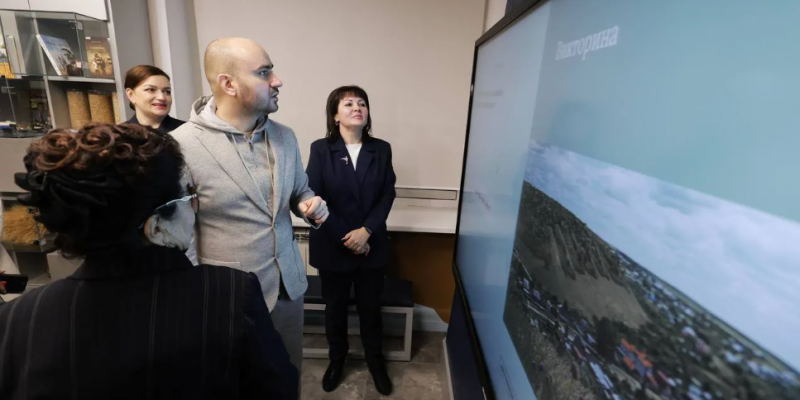 Художественный руководитель Хрящевского ДК Мария Тютьмина рассказала, что эта экспозиция - единственная в Ставропольском районе. В рамках интерактивной выставки можно одним касанием руки "попасть" в любое поселение района. Также посетители могут ознакомиться с историей и достопримечательностями окрестностей.