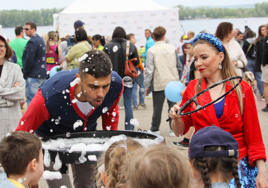 Также гостей всех возрастов ждала масса развлечений - концерт, веселые игры, спортивная разминка на берегу Волги.