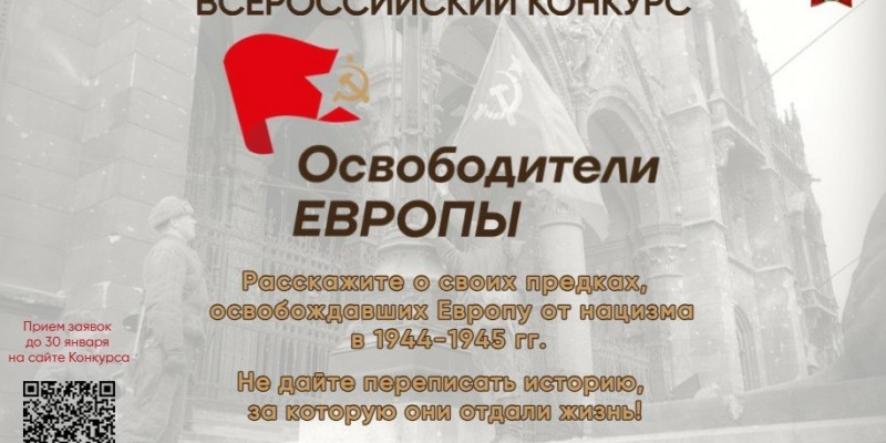 Стартовал прием заявок на Всероссийский конкурс «Освободители Европы», который реализуется в рамках проекта ООД «Бессмертный полк России» при поддержке Фонда президентских грантов. К участию приглашаются все желающие от 10 лет. Цель конкурса – сохранение исторической памяти о подвиге советского народа в Великой Отечественной войне и решающем вкладе СССР в освобождение европейских стран от нацизма.
