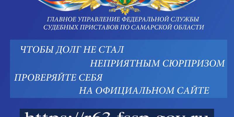 Региональная акция «Узнай о своих долгах» проводится для того, чтобы граждане повышали уровень правовой и финансовой грамотности, лучше понимали принципы работы цифровых сервисов Службы судебных приставов, а также использовали только официальные ресурсы для проверки задолженностей и ее оплаты, сообщает пресс-служба ГУФССП России по Самарской области.