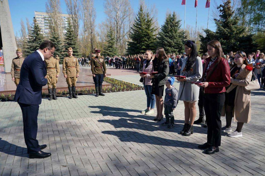 В субботу, 7 мая, губернатор Дмитрий Азаров принял участие в церемонии возложения цветов к Вечному огню памятного знака Монумент Славы в честь 77-ой годовщины Победы в Великой Отечественной войне и вручил государственные награды Российской Федерации семьям погибших военнослужащих - участников военной спецоперации на Украине. Церемония прошла в Парке Победы в Тольятти.