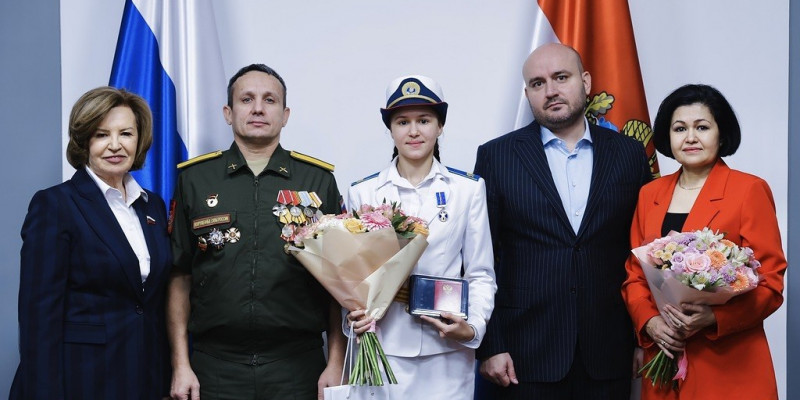 Губернатор Самарской области Вячеслав Федорищев вместе с Сенатором Российской Федерации Мариной Сидухиной вручили памятную медаль Совета Федерации «За проявленное мужество» дочери участника специальной военной операции Руслане Салахутдиновой.