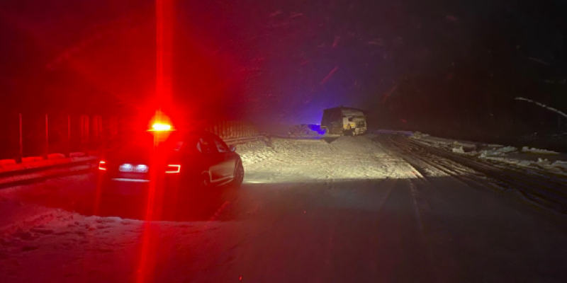 Вечером на автодороге М-5 "Урал" водитель управляя грузовым транспортным средством не справился с управлением и допустил наезд на препятствие (осевое ограждение).