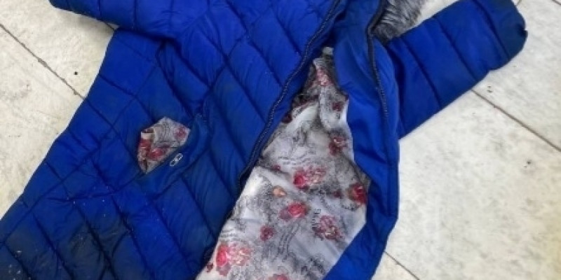 Была одета в куртку синего цвета ниже колена, джинсы синего цвета, кроссовки черного цвета.
