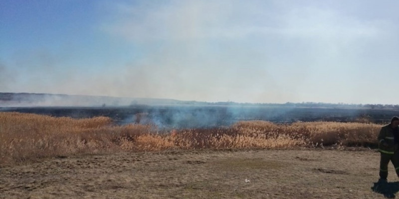 По прибытии было установлено, что горит камыш на площади 800 квадратных метров.