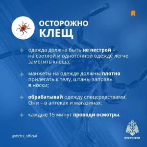 В этом году сезон активности клещей наступил раньше обычного. Соблюдайте рекомендации от МЧС России и будьте в безопасности.