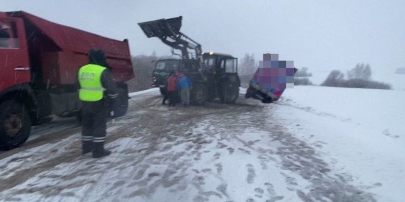 Полицейские остановили два грузовых Камаза, вызвали трактор с ближайшего сельского поселения Краснояриха и попросили помочь вызволить из снежного плена попавшего в сложную ситуацию водителя.