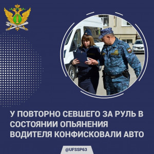 Судебные приставы Шигонского района изъяли автомобиль у жителя Самарской области, осужденного за управление транспортным средством в состоянии опьянения.