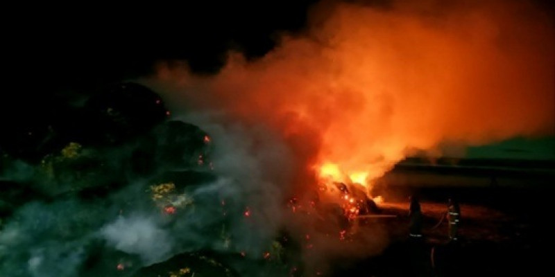 По прибытии было установлено, что горит 200 тонн тюков сена.