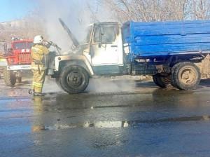 По прибытии, в 9 часов 4 минуты, было установлено, что на автодороге Кинель – Богатое – Борское вблизи села Богатое горит кабина грузового автомобиля ГАЗ-53.