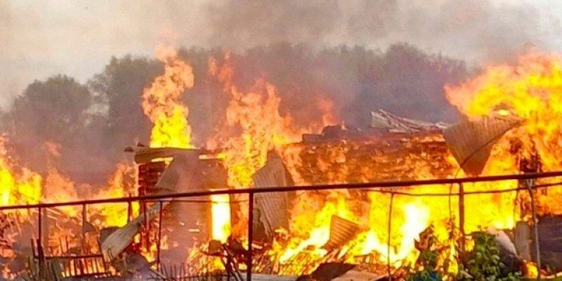 По прибытии было установлено, что открытым пламенем горит жилой дом и хозяйственные постройки на площади 150 квадратных метров.