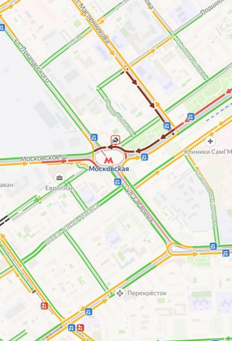Возможно увеличение интервалов на маршрутах №№ 1, 2, 22, 23, 24, 34, 37, 41, 47, 67: ДТП стороннего транспорта на кольце м. Московская.