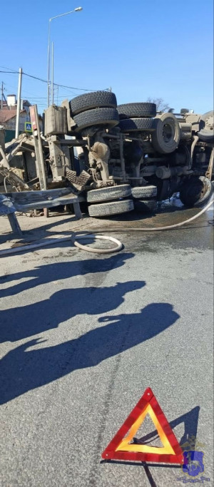Сегодня, 15 апреля, утром на территории Красноглинского района произошло ДТП с участием большегруза. По предварительным данным сотрудников Госавтоинспекции, 27-летний водитель Камаза с бетономесителем следовал в районе территории Дома ЭМО 1. Со слов водителя, во время движения, у транспортного средства оказалась неисправна тормозная система. Мужчина предпринял попытку торможения об отбойник, после чего машину опрокинуло и было допущено столкновение с впереди движущемся автомобилем Hyundai. В ДТП никто не пострадал.