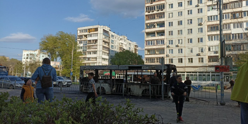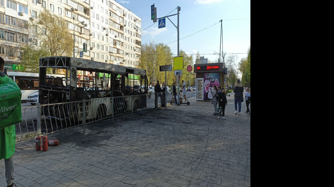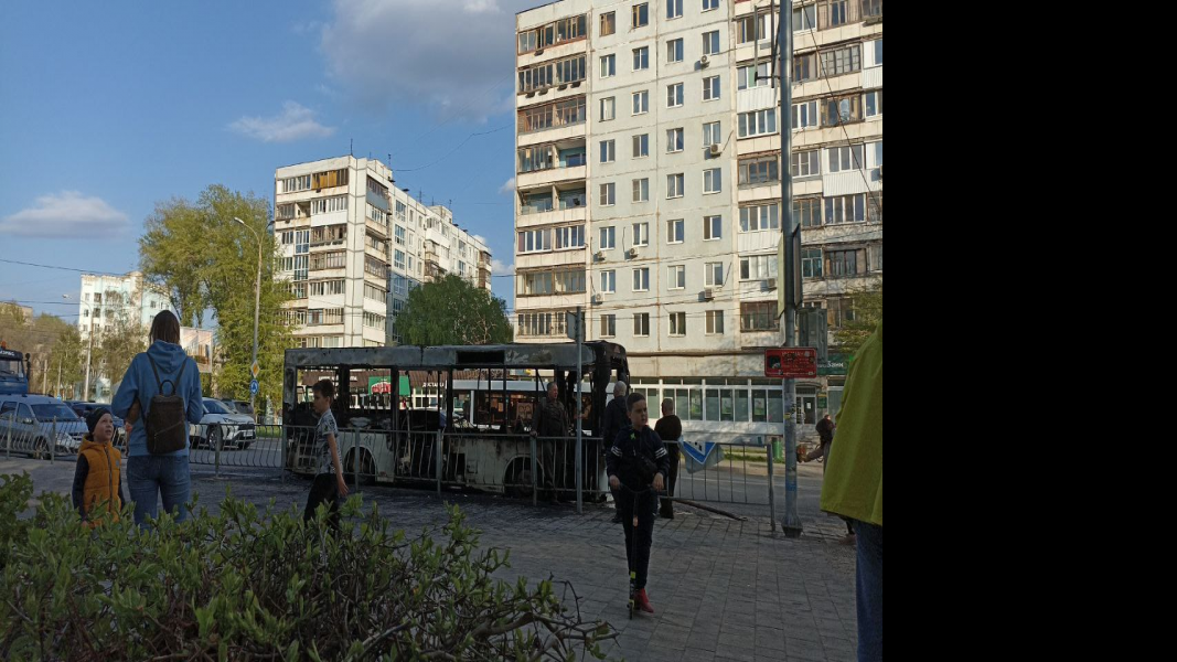 В редакцию НИА Самара поступило сообщение и фото от очевидца о пожаре в пассажирском автобусе сегодня, 4 мая, на ул. Стара-Загора. По сообщению, салон выгорел полностью.