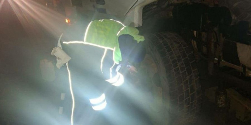 Полицейские уточнили у мужчины причину остановки, который пояснил, что у автомобиля лопнуло колесо, а без помощи не справится. Инспектор ДПС лейтенант полиции Валерий Секуняев и инспектор ДПС лейтенант полиции Сергей Масленников помогли водителю большегруза с заменой колеса.