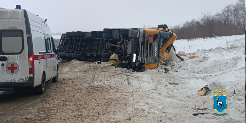 Полицейские работали на месте ДТП в Камышлинском районе. По предварительным данным сотрудников Госавтоинспекции: мужчина, управляя большегрузом Scania, допустил съезд с дороги и опрокидывание в кювет. С места ДТП водитель доставлен в больницу.