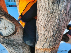 Около 53 дома по улице Чкалова у ребенка застряла нога между двух стволов дерева.