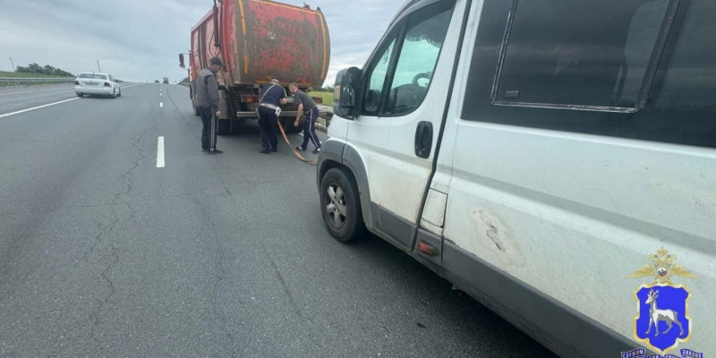 Полицейские, оценив ситуацию, помогли мужчине добраться до ближайшего автосервиса для починки автотранспорта.