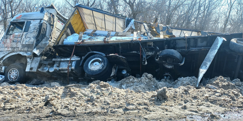 Сегодня, 13 марта, в 11 часов 45 минут в пожарно-спасательный отряд № 30 филиал облГКУ «Центр по делам ГО, ПБ и ЧС» поступило сообщение о дорожно-транспортном происшествии на трассе М-5: произошёл съезд с дороги с последующим опрокидыванием автомобиля SITRAK с полуприцепом. Автомобиль перевозил комплектующие для производства пластиковых окон.