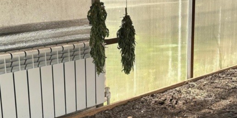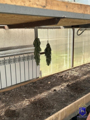 В рамках проведения проверочных мероприятий сотрудники полиции, имея соответствующее решение суда, осуществили осмотр частного домовладения мужчины. В присутствии понятых оперуполномоченные обнаружили и изъяли: в теплице - развешенные для сушки ветки растения, на огороде - два куста подобной культуры, в одной из надворных построек - пять полимерных пакетов и пластиковую банку с измельченным веществом растительного происхождения.