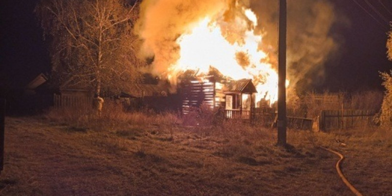 По прибытии пожарных было установлено, что открытым пламенем горит дом на площади 50 квадратных метров, произошло обрушение сеней и кровли.