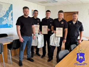 По инициативе Общественного совета Управления МВД России по городу Тольятти сотрудникам патрульно-постовой службы полиции лейтенантам полиции Денису Трескину, Станиславу Ямпольскому и младшему лейтенанту полиции Владимиру Чиркову были вручены благодарственные письма и памятные подарки.