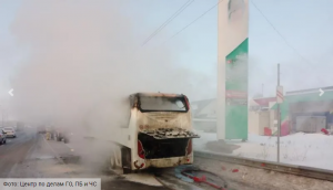 В 8:35 рядом с поворотом от промышленного предприятия к поселкам Стройкерамика и Петра Дубрава загорелся пассажирский автобус.