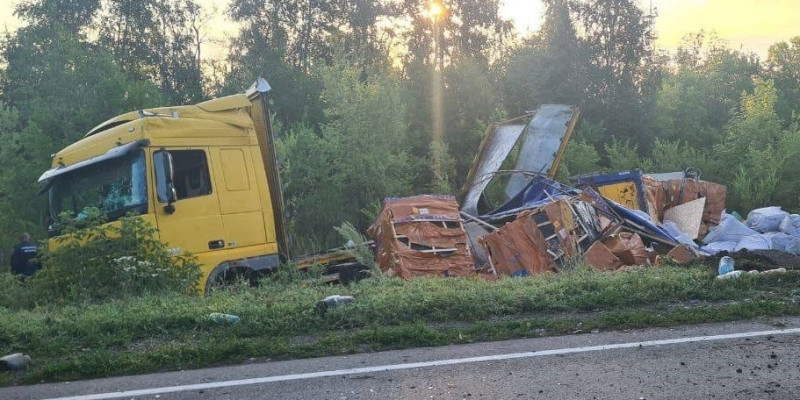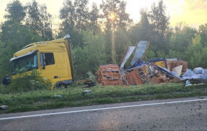 По прибытии было установлено, что произошел съезд в кювет фуры DAF. К сожалению, пострадал водитель транспортного средства.