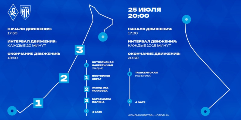 1. "Октябрьская набережная" ("Ладья") – "Солидарность Самара Арена", гейт 4.