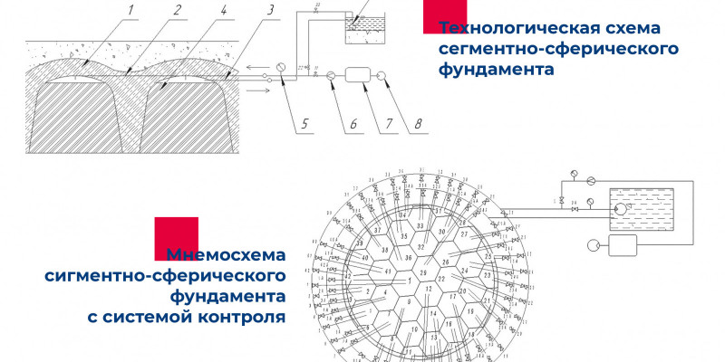 Вместо традиционного в таких случаях кольцевого фундамента политеховцы считают возможным использовать монолитную плиту, у которой нижняя часть имеет выемки, представляющие собой сегменты сфер, равномерно расположенные по всей площади в несколько рядов. Другими словами, предлагаемые основания резервуаров чем-то напоминают упаковку для яиц. Благодаря этому, уменьшается риск просадки грунта, например, во время подтоплений, и других неблагоприятных погодных или геологических условиях. Учёные говорят, что 45−48 процентов аварий на резервуарах происходят как раз из-за таких просадок, вызывающих коррозию и разрывы. Такая конструкция фундамента увеличивает площадь соприкосновения с грунтом и равномерно распределяет нагрузку за счёт сегментов, в местах пересечения которых расположены усечённо-пирамидальные сваи.
