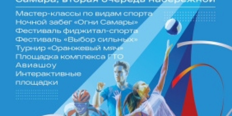 Основная программа запланирована на II очереди Самарской набережной (от ул. Маяковского до бассейна ЦСКА) и начнется в 17:00. Состоится чествование лучших спортсменов, тренеров, работников сферы физической культуры и спорта и вручением государственных наград.