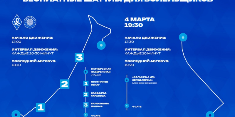 Для удобства болельщиков в день кубковой игры с "Оренбургом" до стадиона "Солидарность Самара Арена" от Ладьи и от остановки "Больница им. Середавина" можно доехать на бесплатных автобусах. Они помогут быстрее добраться на игру.