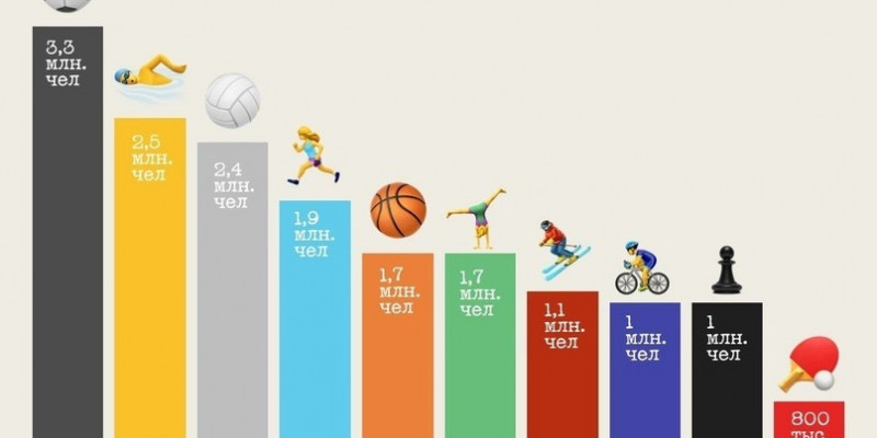 Спорт набирает все большую популярность у жителей России. Согласно данным Минспорта РФ, в нашей стране регулярно тренируются 52,9% населения. А самыми распространенными видами являются: футбол, плавание, волейбол, легкая атлетика, баскетбол, фитнес-аэробика, лыжные гонки, вело- и пешие походы, шахматы, настольный теннис.