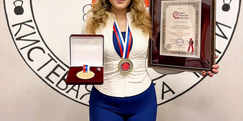 На открытом региональном Кубке она подняла гирю весом 16 кг 450 раз, превзойдя прежний рекорд в 428 повторений. Тренер Александр Егольников отмечает невероятную целеустремлённость, трудолюбие и стойкость в тренировках.