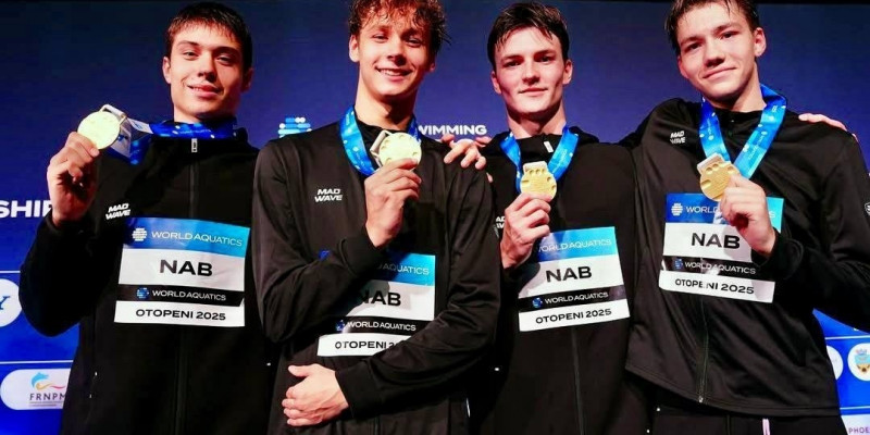 Георгий Злотников в составе эстафеты 4х100 метров вольным стилем занял первое место и установил новый мировой рекорд (юниорский) – 3 минуты 15,38 секунды!