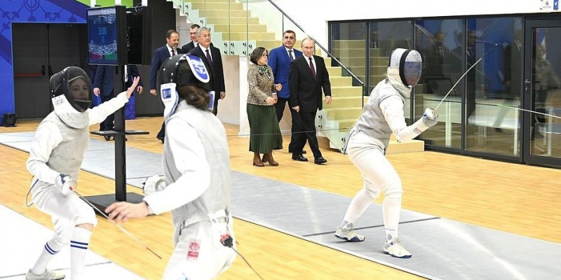 В тот же день глава государства в Уфе, где стартовал международный форум «Россия – спортивная держава», посетил республиканский Центр спортивной подготовки по фехтованию. Владимира Путина сопровождали помощник Президента Алексей Дюмин, полномочный представитель Президента России в Приволжском федеральном округе Игорь Комаров, министр спорта Михаил Дегтярёв, глава Башкортостана Радий Хабиров.