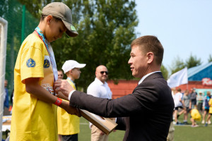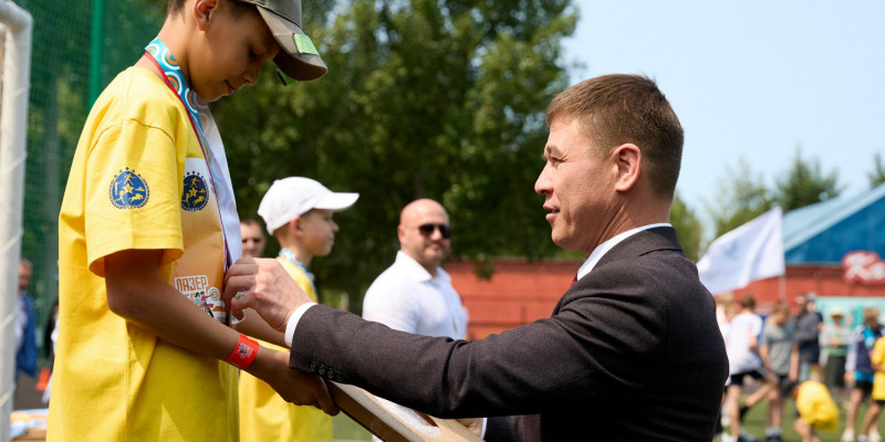 В церемонии награждения победителей и призеров «Лазер-бега» принял участие ветеран СВО, выпускник региональной программы «Школа героев» — продолжения президентской программы «Время героев», мастер спорта по греко-римской борьбе Ринат Калимуллин.