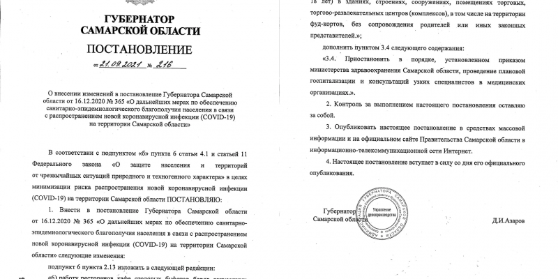 В Самарской области расширили список ограничений, введенных для того, чтобы остановить распространение коронавируса в регионе. Документ подписал губернатор Дмитрий Азаров.