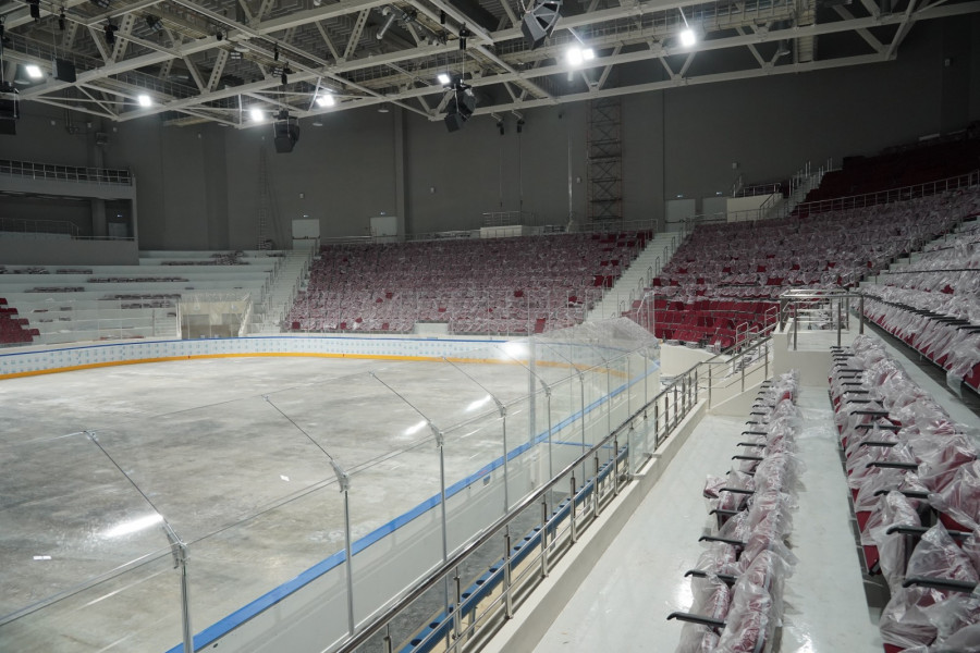 Основной, спортивно-зрелищный блок включает ледовую арену с трибунами на 5000 зрителей, готовую к проведению крупных, в том числе международного уровня, соревнований, и других масштабных мероприятий и концертов.