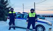 Инспекторы ДПС убедившись, что жизни и здоровью автовладельца ничего не угрожает, начали операцию по освобождению автомобиля из «снежной ловушки».